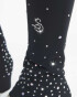Høytlivsbukse m/glitter fra kneet og nedover. Glatt utside og pusete inni. I et stoff de kaller "Thermal" Kan trekkes ned over hælen. De er små i størrelsene - og de er mindre fleksible enn de tynnere buksene. Kan derfor være lurt å gå opp i størrelse.